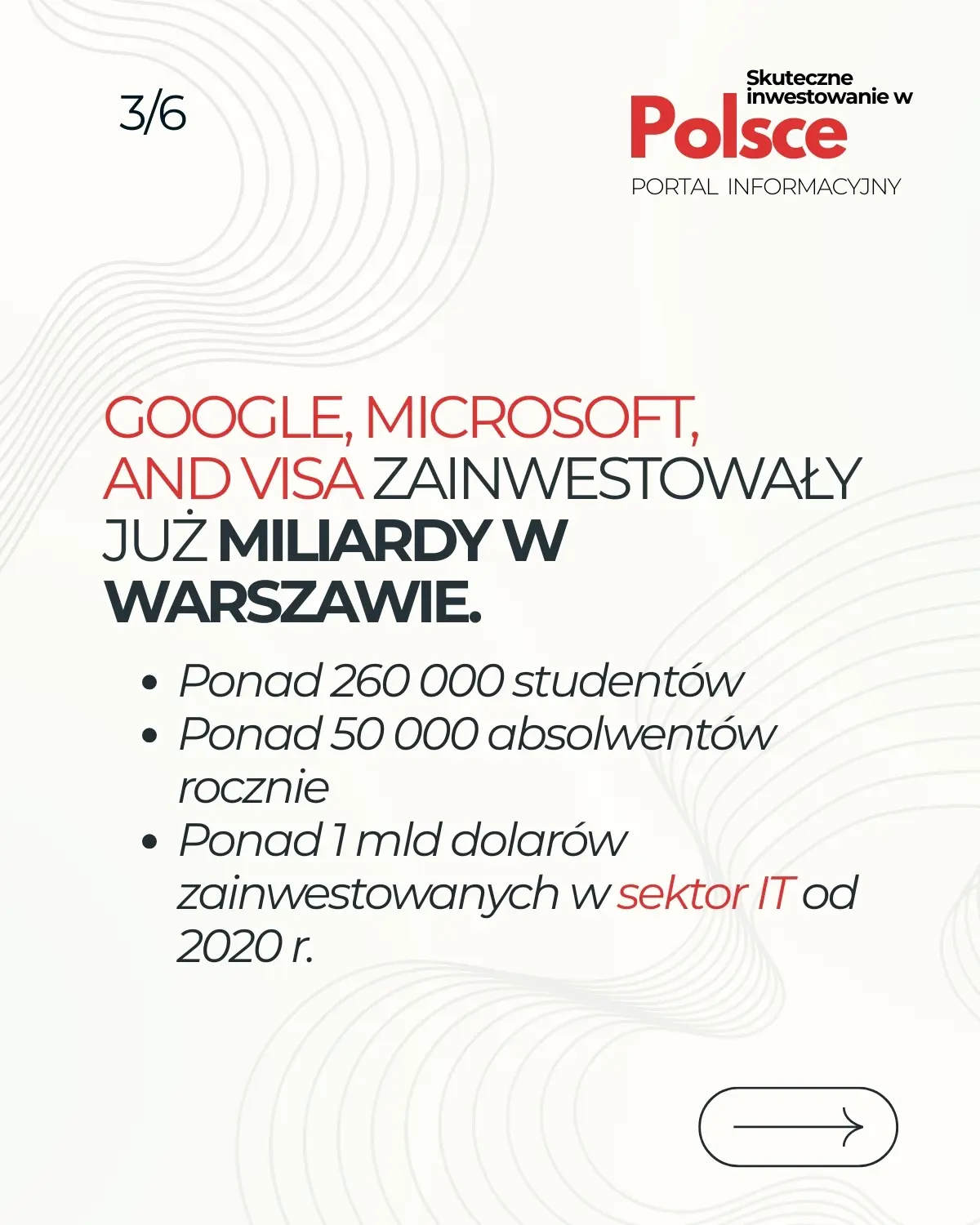 Warszawa jest europejskim hubem technologicznym i finansowym. Miasto przyciąga najwięcej inwestycji zagranicznych (FDI) w Europie, co potwierdzają decyzje gigantów takich jak Google, Visa czy Microsoft,które zainwestowały tu miliardy dolarów.