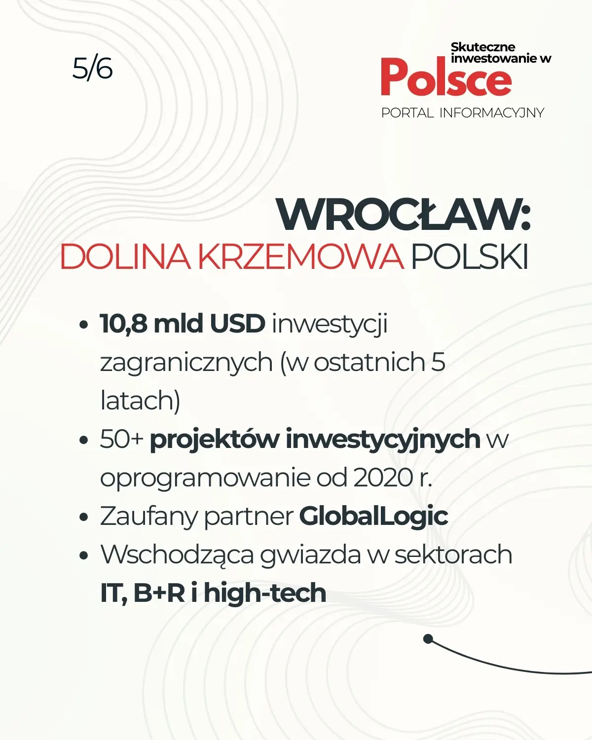 Miasto jest określane mianem „polskiej Doliny Krzemowej” ze względu na ogromne inwestycje zagraniczne w sektorze IT i nowoczesnych technologii. Wrocław przyciągnął ponad 10,8 miliarda dolarów FDI w ciągu ostatnich pięciu lat, a liczba projektów inwestycyjnych w obszarze software development przekroczyła 50 od 2020 roku. Dodatkowo, firmy takie jak GlobalLogic (część Hitachi) wybrały Wrocław na swoje europejskie centra technologiczne.